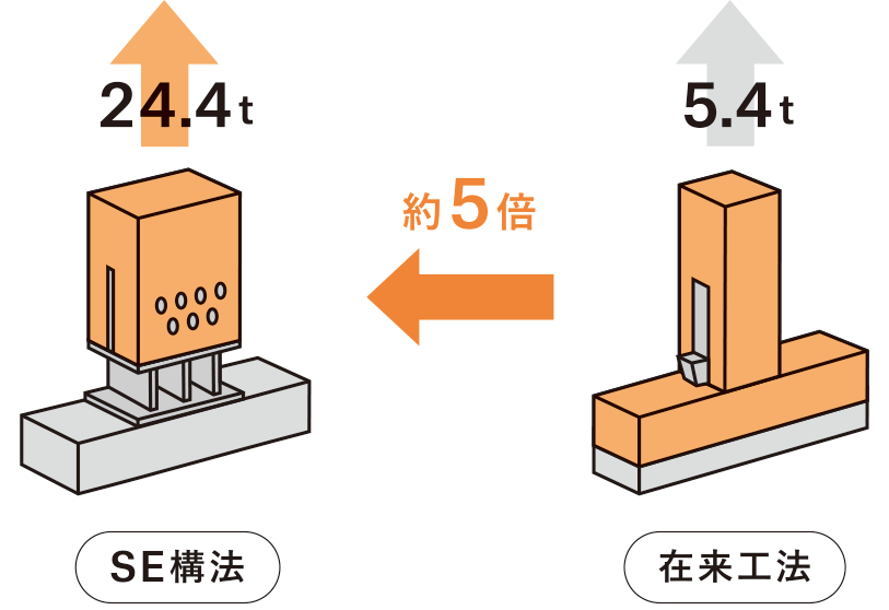 横揺れにも強く、在来工法と比べて最大5倍もの引き抜き耐力を発揮します。