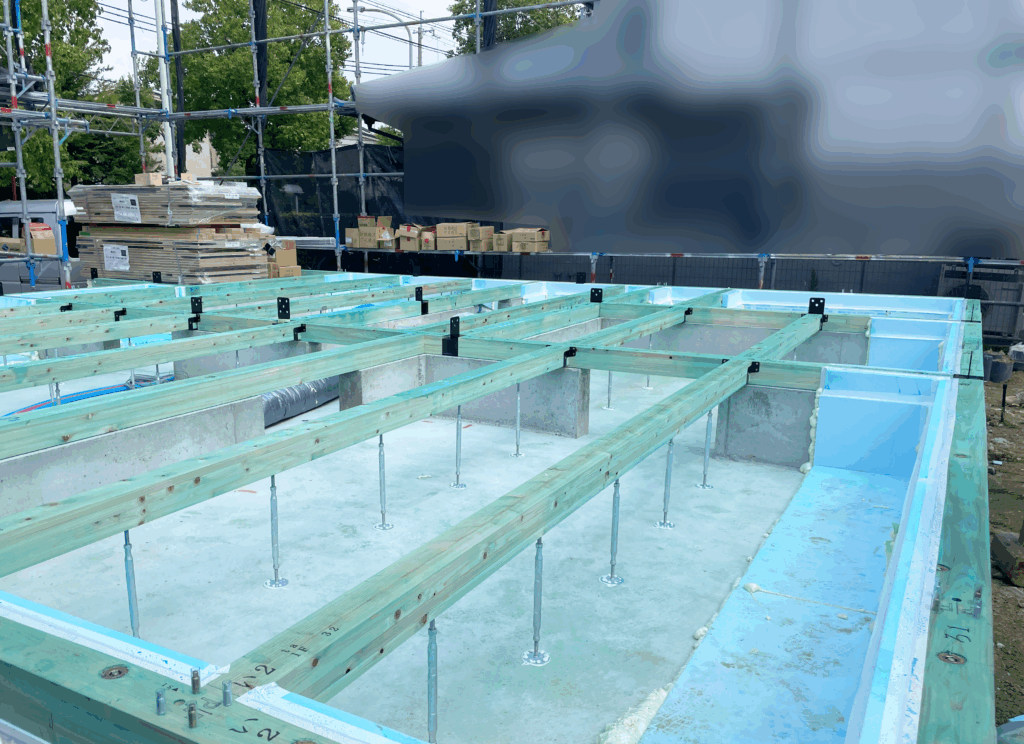 上棟の前に、土台・大引き・1階床を施工していきます。