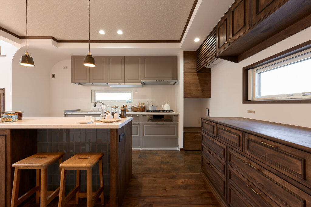 空間のアクセントになるタイル、使い勝手を考えた造作家具など、