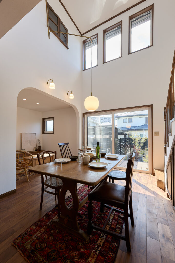 また、吹き抜けと2階の洋室をつなぐ室内窓もデザインのアクセントとしても印象的なポイントの一つとなっています。