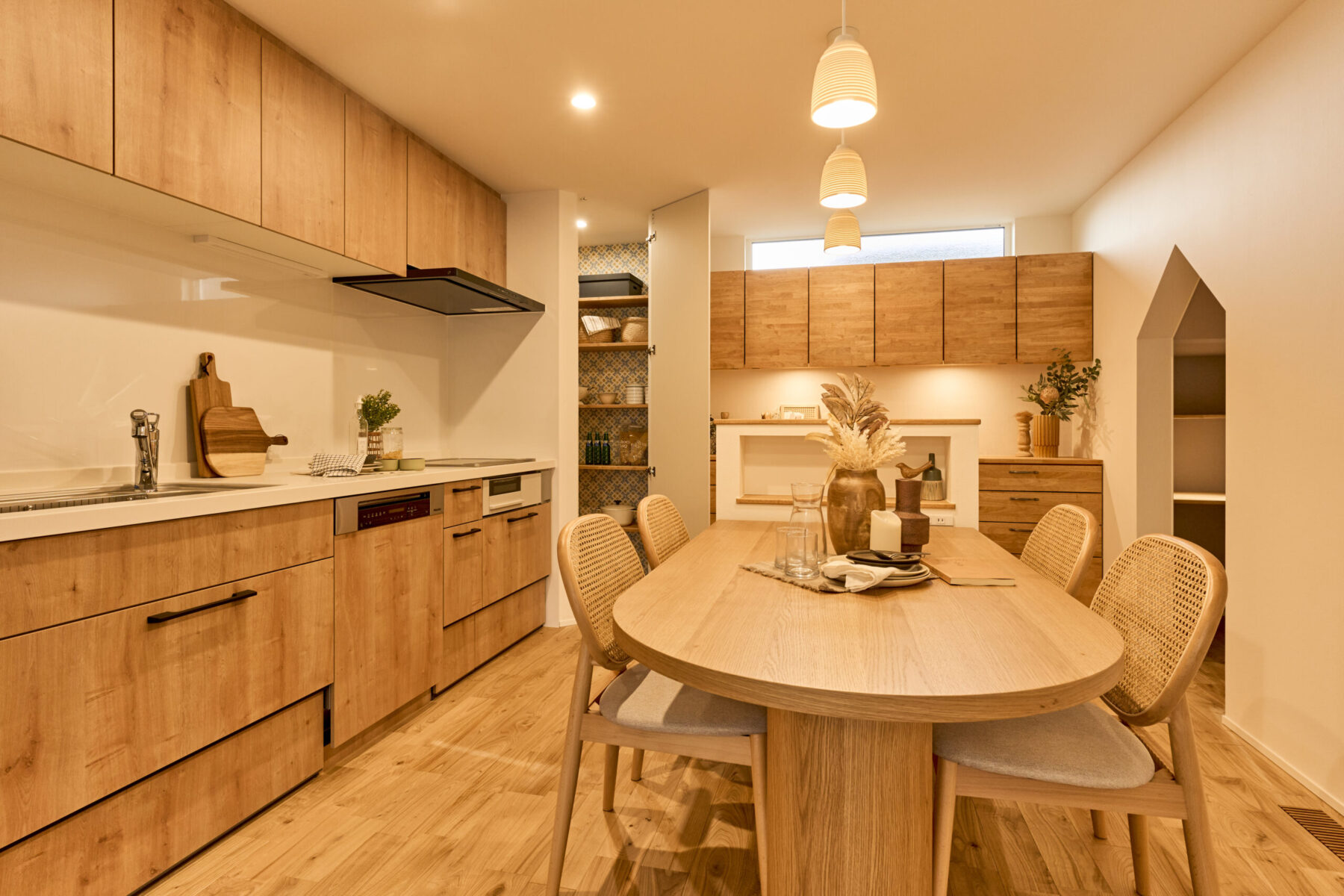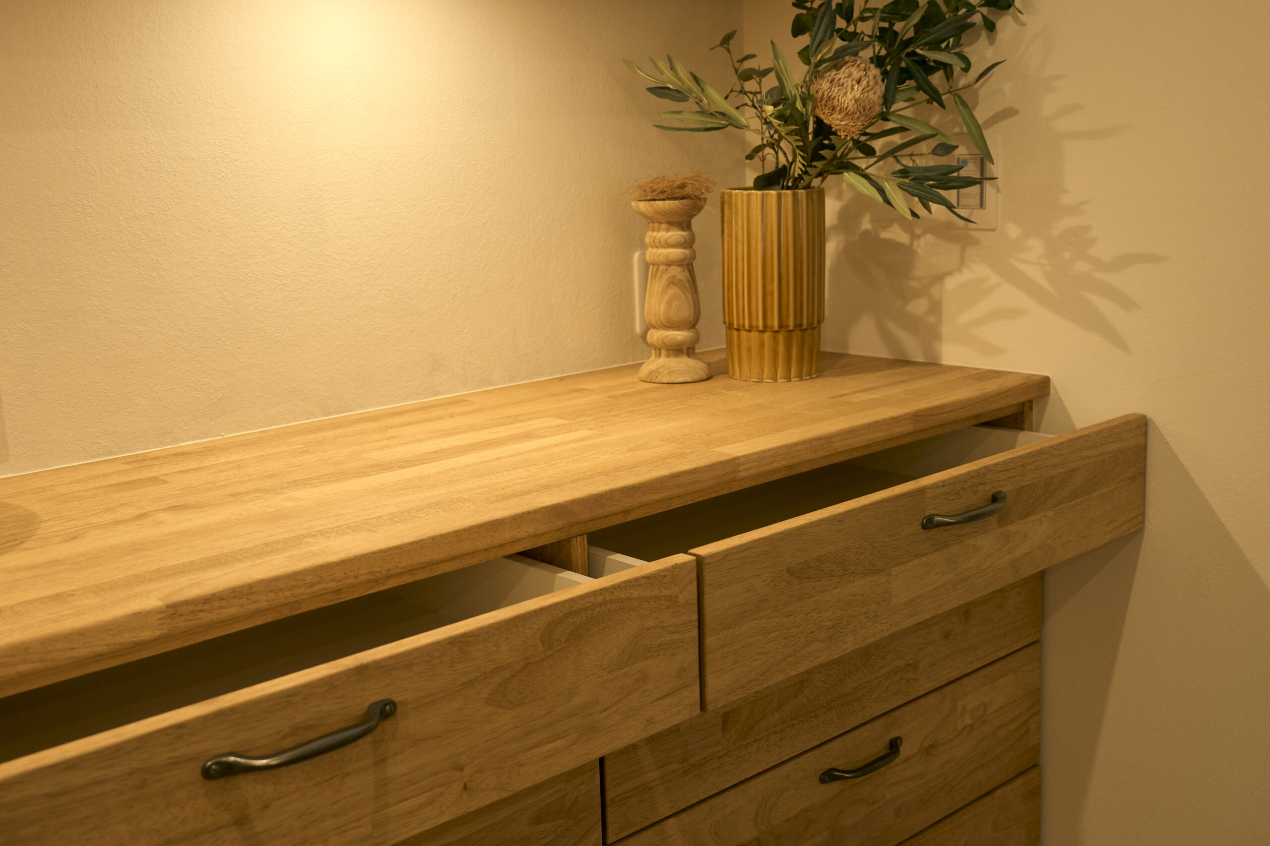 造作家具は空間にぴったり合わせて収納力を高め、スッキリとしたデザインで機能性を重視。