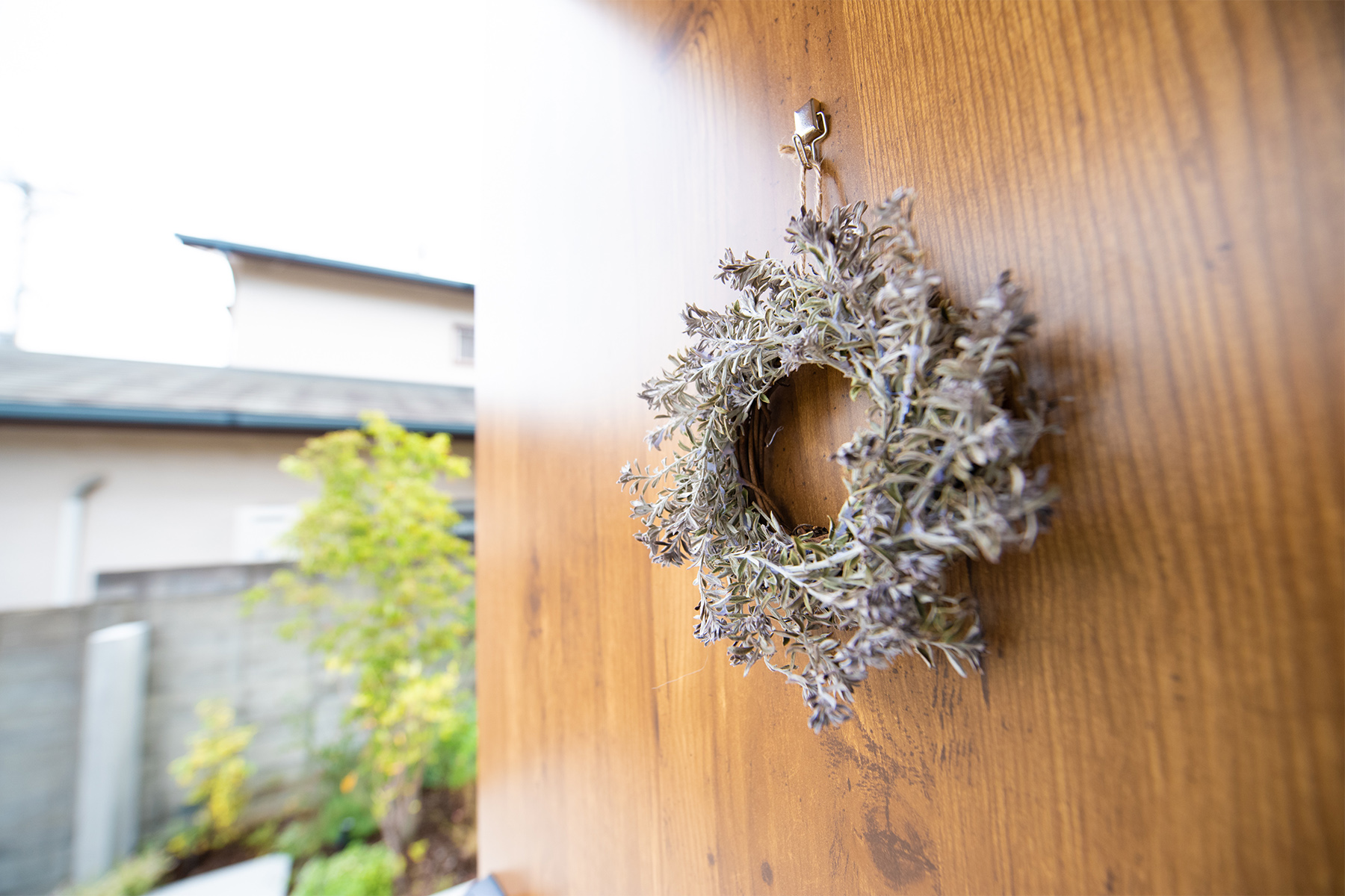 玄関をあえて南側に配置し、道路からの視線を遮るために扉の向きを工夫しました。