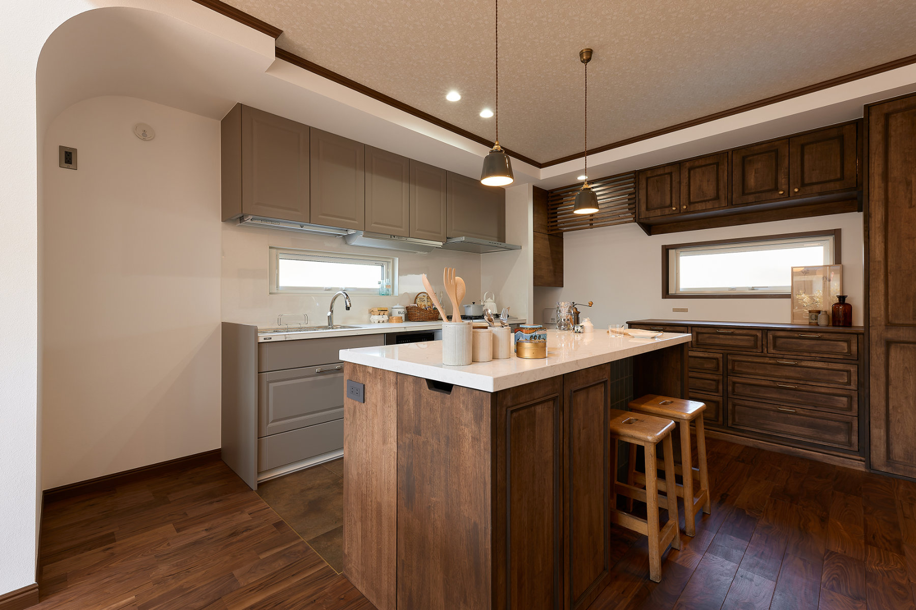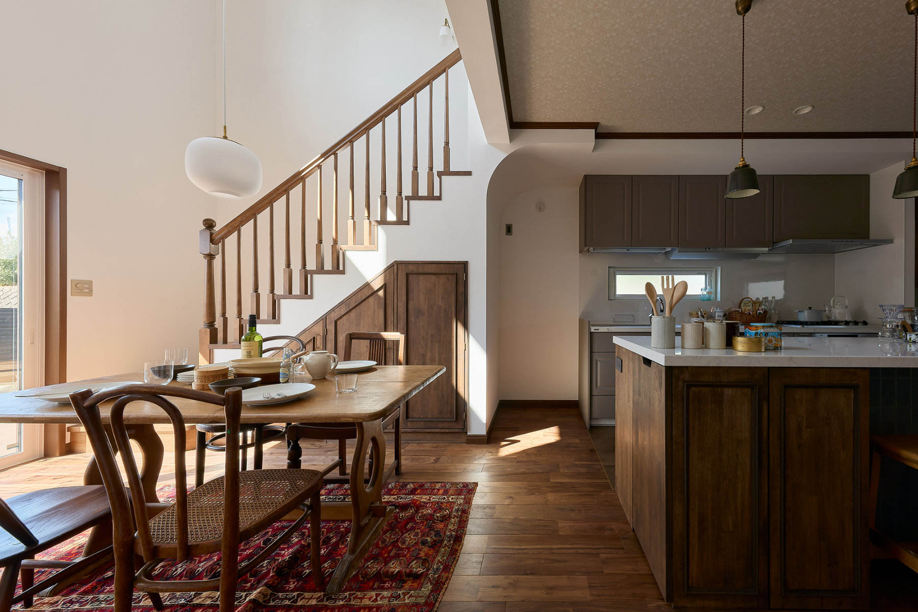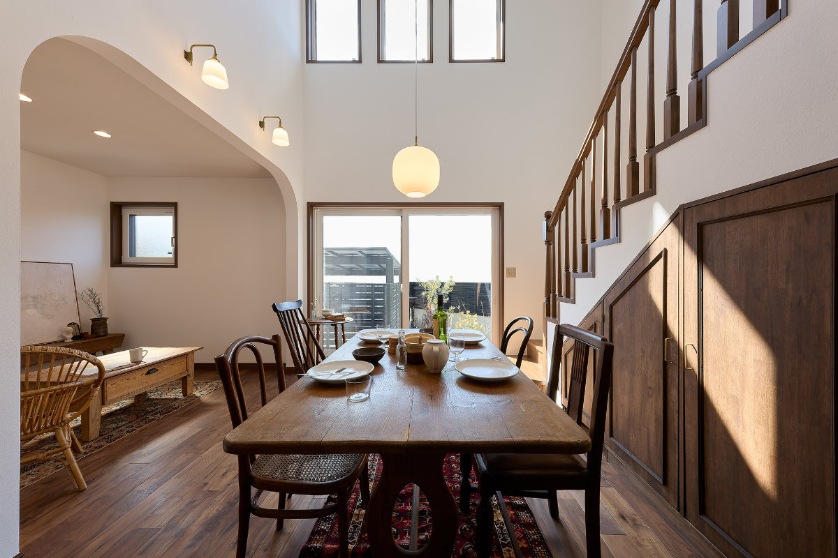 そこにはクラシカルな雰囲気を感じさせるアーチ開口や、味わい深い木製造作家具、